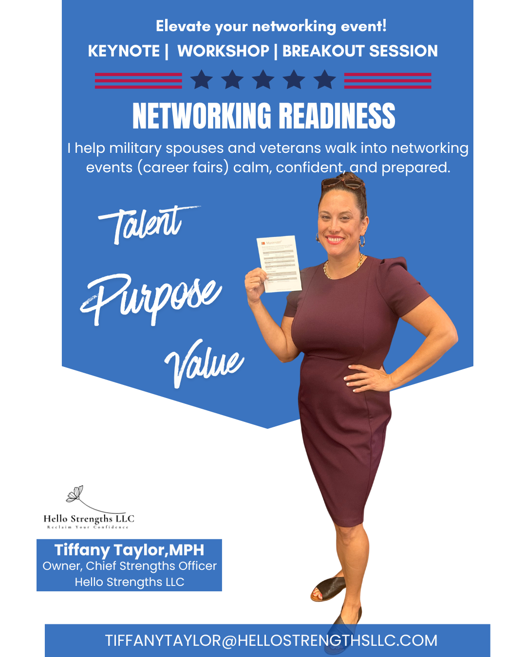 If you are a military-connected organization, let’s talk about how I can help elevate your next career or networking event through keynotes, workshops, and breakout sessions.